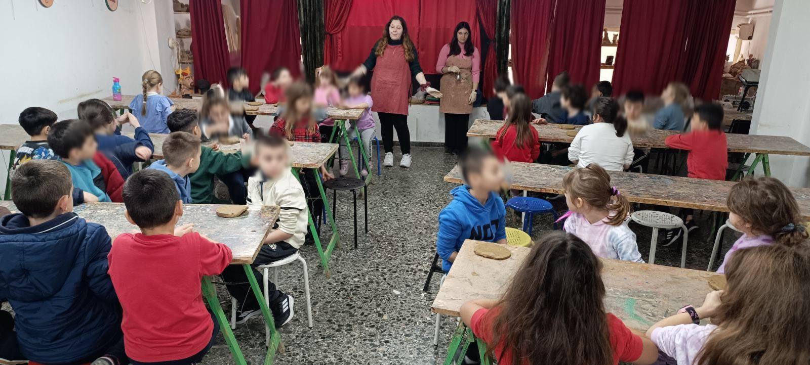 Τα παιδιά του σχολείου μας (Α', Β', Γ', Δ' τάξεις) επισκέφτηκαν το εργαστήριο Κεραμικής - Αγγειοπλαστικής, όπου τα παιδιά παρακολούθησαν τον αγγειοπλάστη κο. Βασίλη, να φτιάχνει διάφορες δημιουργίες στον τροχό αλλά και κουκλοθέατρο. Ύστερα, τα παιδιά των μικρότερων τάξεων δημιούργησαν την Πλαγγόνα, μια αρχαία κούκλα αφιερωμένη στη Θεά Άρτεμις, ενώ τα παιδιά των μεγαλύτερων τάξεων ζωγράφισαν πάνω σε πιάτα θεματολογία από την ιστορία τους. Στο τέλος, μας δώρισαν τις δημιουργίες τους - πήλινες κανάτες, βάζα και πιατέλες - οι οποίες είναι ένα ευχάριστο ενθύμιο από την επίσκεψή μας και θα κοσμούν το σχολείο μας. Τους ευχαριστούμε πολύ για αυτή την όμορφη εμπειρία!