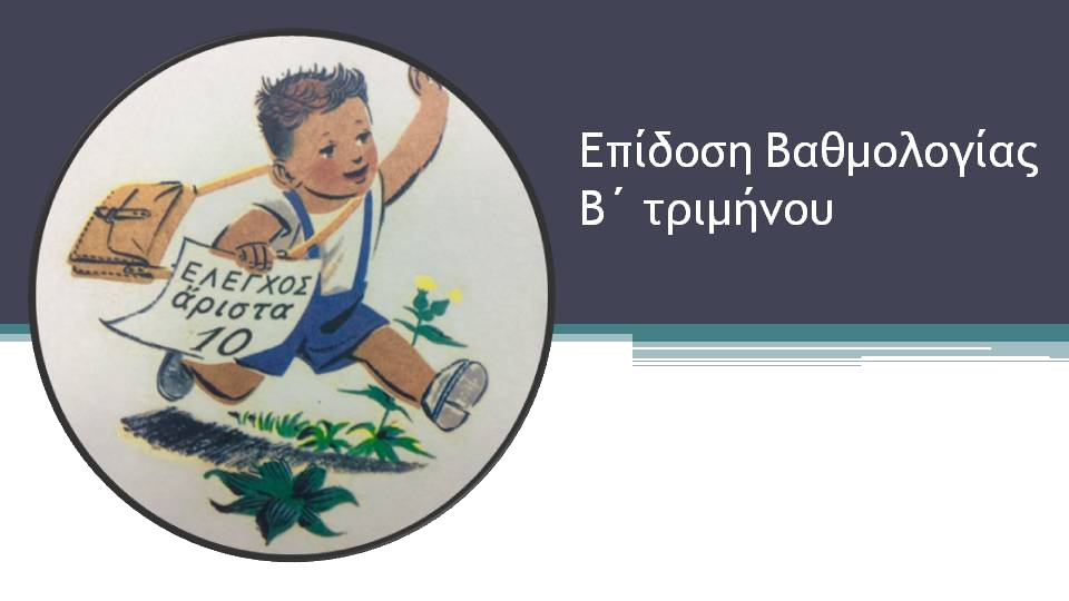 , στην αίθουσα της κάθε τάξεως θα γίνει η επίδοση της βαθμολογίας του Β΄ τριμήνου και η ενημέρωση για την πρόοδο των μαθητών και μαθητριών. Στις Α' και Β' τάξεις προβλέπεται μόνο περιγραφική αξιολόγηση. Οι δασκάλες των τάξεων θα ενημερώσουν μόνο προφορικά για την πρόοδο των παιδιών. Στις Γ ́ και Δ ́ τάξεις προβλέπεται περιγραφική αξιολόγηση σε συνδυασμό με κλίμακα βαθμολογίας ως ακολούθως: Άριστα (Α), Πολύ καλά (Β), Καλά (Γ) και Σχεδόν καλά (Δ). Στις Ε ́ και Στ ́ τάξεις προβλέπεται περιγραφική αξιολόγηση σε συνδυασμό με κλίμακα Βαθμολογίας που είναι λεκτική και αριθμητική, ως ακολούθως: Άριστα (9-10), Πολύ καλά (7-8), Καλά (5-6) και Σχεδόν καλά (˂5). Επίσης από την Πέμπτη, 19/03/20265 έχετε τη δυνατότητα να ενημερωθείτε ηλεκτρονικά τόσο για τη βαθμολογία όσο και για τις απουσίες των μαθητών/τριών μέσω της ηλεκτρονικής εφαρμογής «eParents»: https://eschools.minedu.gov.